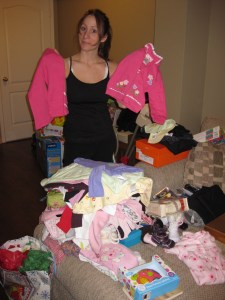 We may have doubles and can’t bear to hurt your feelings.  We may really need some winter socks rather than the 14th “I love Mommy” bib.   We knew we were having another boy and he may actually be throwing up blue so we were hoping to buy something in another colour.  We may have so much Made in China plastic that we’re getting high off lead fumes when all we really need are diapers.  Those are the good reasons…  I’m hoping not to spell out the not-so-proud-to-admit reasons for shameful return but come on!  There is so much glitter on girls clothing these days that it will forever be stuck between the grooves of my hardwood floors and down the sides of my car seats!  Those persistent specks have made their way into their underwear and all over Daddy’s face!  I don’t have boys but my friends do and they’ve told me to back off the cartoon clad t-shirts and Mickey Mouse running shoes!  Oh, and stuffed animals?  Nothing further.