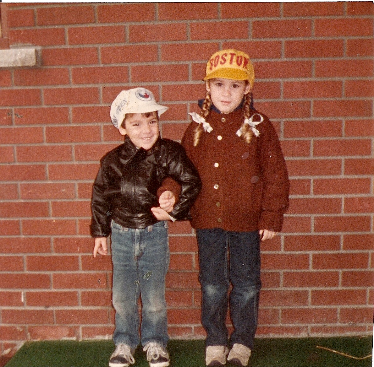 2. hey those are some cute kids standing on the car and in front of the brick wall? do they model? lol